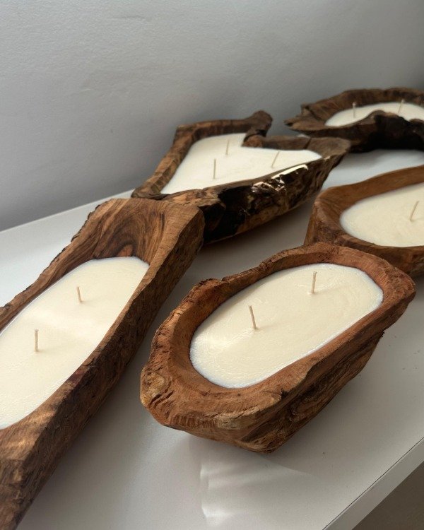 Vela de soja en en troncos de madera de Olivo, Algarrobo y Nogal provenientes de Catamarca, Argentina